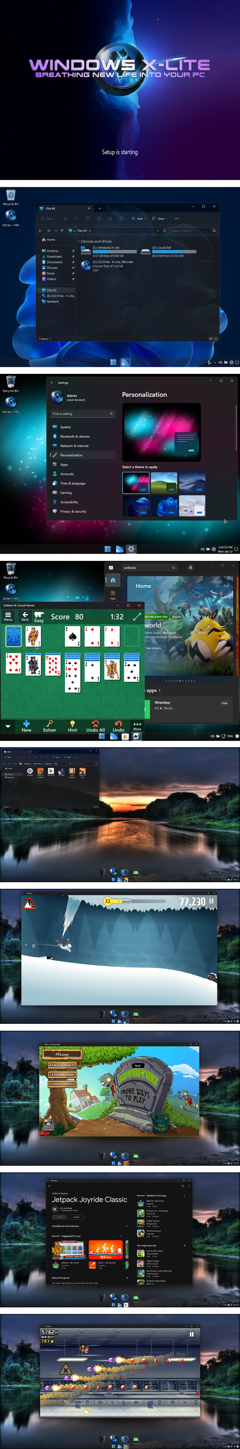 These Builds do have full support for Desktops, Laptops, and Tablet PC's, WLAN, Bluetooth, MS Store, UWP Apps, Xbox Game Pass, Xbox Controllers, Printing, and will support most 3rd Party Apps and Games.